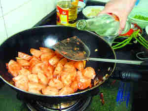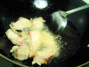 3、魚塊應切得大小一致,以便下鍋油炸時,能將魚塊炸勻炸透;炸魚塊時要將油燒熱,炸至魚塊變白變硬即成。