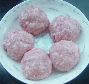 2.將肉餡做成丸子的形狀(很簡單的,不用細說了吧!)