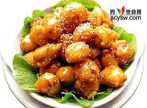 2、油拔法:這種技法用得較少。原因是它不易於掌握,故一般只是有經驗的廚師才用它。具體方法是:淨鍋置小火上,先用油將鍋炙一遍,再放入少許油,下入白糖,然後用手勺不停地翻炒,鍋中白糖先是炒成翻砂狀,此時手感吃力,隨後白糖慢慢溶化,手感也漸漸輕鬆。當鍋中白糖成漿狀且色呈金黃時,即可下入主料。油拔技法的優點是花費時間短、上菜快,但是需要憑手感和看顏色,而且判斷要準確。