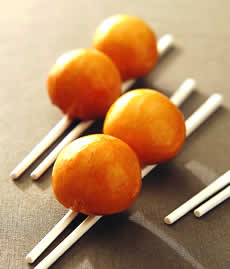 [製作流程] (1)低筋麵粉加入細砂糖、發粉與水,一起揉成麵糰備用。 (2)將熟鹹蛋黃切細丁,然後把所有的內餡材料混合拌勻,一起蒸40分鐘,待涼後放入冷凍庫凝結,即為餡料。取出後平均分成12份備用。 (3)將麵糰分成每份30公克,並桿成圓形麵皮,包入1份餡料後,用手稍壓成圓扁球狀,依序完成12個備用。 (4)熱油鍋,用180℃炸至熟且呈金黃色,撈起瀝乾油份後即可盛入盤中食用。