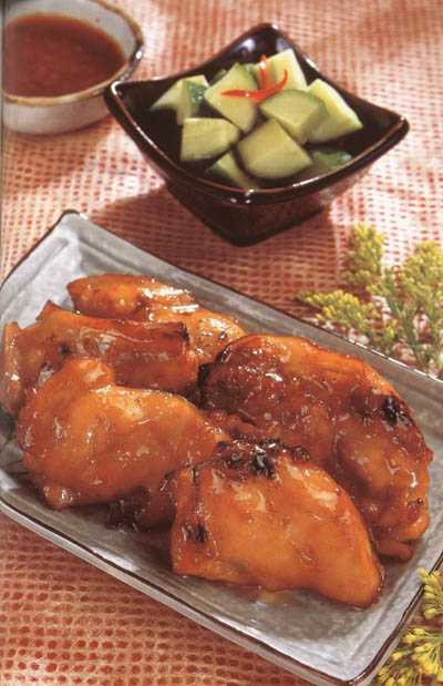 基本特點 此菜主料雞要選擇廣東清遠雞種,雞皮完整,雞身豐滿,只型不大,在燙雞時,火候不能過大,以雞足皮不碎裂為佳。上火烤雞時,以色呈金紅而亮為佳。 本菜由浦東天天漁港提供