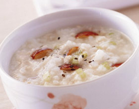 糯米:糯米含有蛋白質、脂肪、糖類、鈣、磷、鐵、維生素b1、維生索b2、煙酸及澱粉等,營養豐富,為溫補強壯食品;具有補中益氣,健脾養胃,止虛汗之功效,對脾胃虛寒,食慾不佳,腹脹腹瀉有一定緩解作用;糯米有收澀作用,對尿頻,盜汗有較好的食療效果。