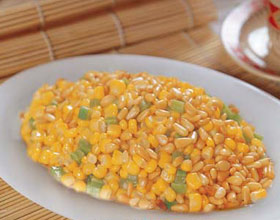 玉米(鮮):玉米中含有豐富的營養元素,具有益肺寧心,健脾開胃,防癌,降膽固醇,健腦之功效;玉米中的纖維素含量很高,具有刺激胃腸蠕動、加速糞便排泄的特性,可防治便秘、腸炎、腸癌等。