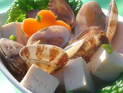 1、將豆腐切丁、小白菜洗淨切成段、胡蘿蔔洗淨切片,文蛤洗淨待用;