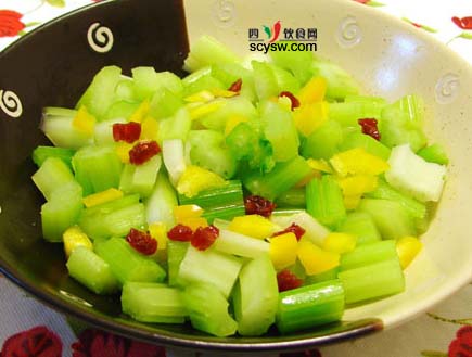 3.把芹菜丁倒入熱水鍋中,30秒馬上焯出來。