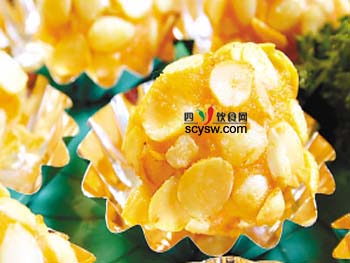 4.蝦丸子放到碟中打滾粘上杏仁片。