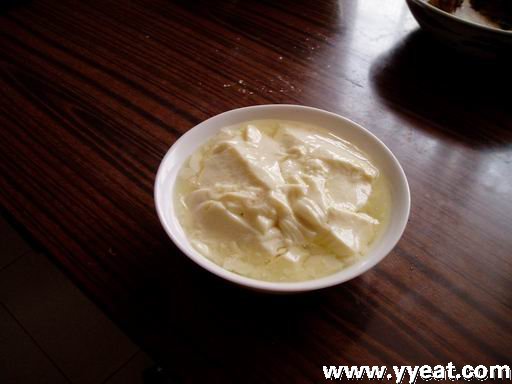 2、這麼多的豆腐腦,大概用一勺的內脂就可以了,一定要注意內脂的用量啊!很重要!我剛開始做的時候,總會因為用多或用少而失敗。