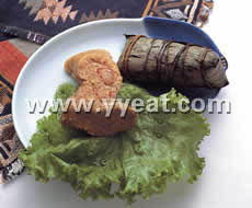(2)梅花肉切長條狀,用醃料醃2~3小時。