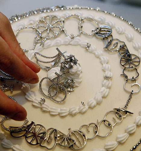 蛋糕裝點了白金飾物和白金粉末。