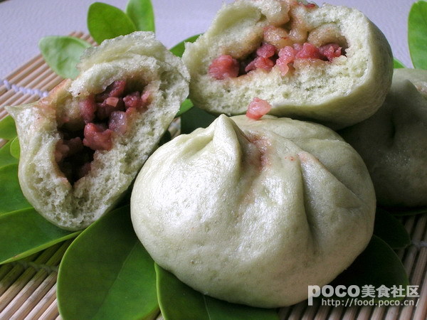 看到圓豬豬的包點做得甘成功,所以照他的方子,再加點綠茶粉做包子的皮,叉燒做法請參照我做叉燒酥的貼。
