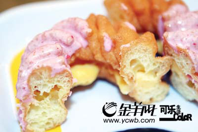 日系甜甜圈之所以大受歡迎還在於其花樣翻新得夠快。很多女孩子都喜歡它誘人的外表。如今店內暫時供應的四類形狀,包括波堤、法蘭奇、歐菲香及蛋糕類甜甜圈;每一大類又可根據塗上白巧克力、草莓、糖霜或黑巧克力不同口味的頂級手工巧克力醬而有所區別。總之,算起來店內甜甜圈種類已達二十種啦。
