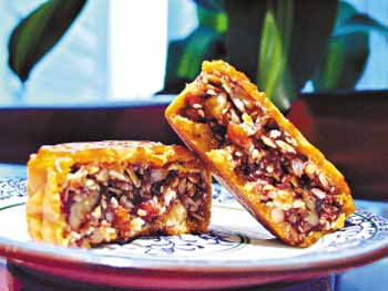 製法講究,廣州酒家的五仁月餅選料也特別挑剔過人,起碼比豬扒和芙蓉姐姐齊上的港姐要嚴格得多。。油指定是要山東創始於抗戰時期的長生牌花生油,糖一定得是廣西桂花糖,碳化糖那種,全部都是有三證那種。而核心的五仁就更考功夫,全部都得提前一年去產地觀察訂購,就像買賣期貨一般,全靠買手的眼光。廣州酒家五仁中的核桃用是雲南核桃,比陝西核桃更好,白身而油質高,更甘潤。欖仁則是增城西山的,兩頭尖中間圓,欖味特足特香。它採摘時全人手以籐條打落下來,然後是人手逐粒逐粒以刀去殼,成本都去到200多元一公斤。至於黑瓜子則是信封的,油量比普通的瓜子大,而麻仁來自上海一帶,杏仁非山東不選,桔餅當然是四會產的。連看起來最簡單的豬肉粒,也挑的是豬背肌,特別少筋滑嫩。這麼經過一輪後宮選美式的挑選,做出來的五仁月餅不好吃才怪,看來今年得跟老媽說說別老是盯著蓮蓉月來買嘍。