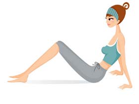 1.雙膝彎曲,手臂伸直放在身後,手指向前。