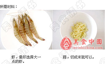 2、蝦處理好後放到一邊,把蒜去皮,洗淨後切成末備用。