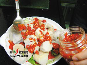 6 取出蒸好的剁椒芋頭,淋入1/3湯匙香油,即可上桌。