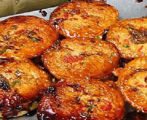 色呈紫醬紅,形似海棠花,香甜且軟,適宜熱食。